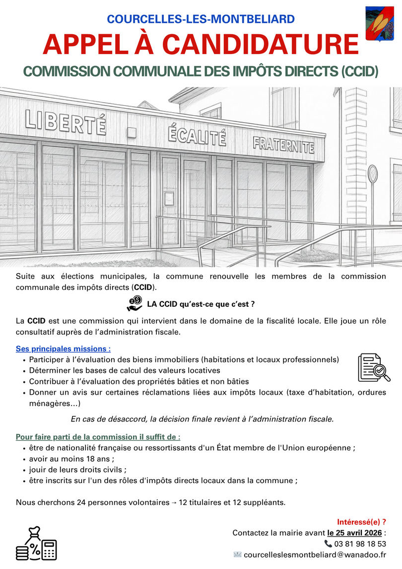 📢 La commune renouvelle les membres de la Commission Communale des Impôts Directs (CCID).