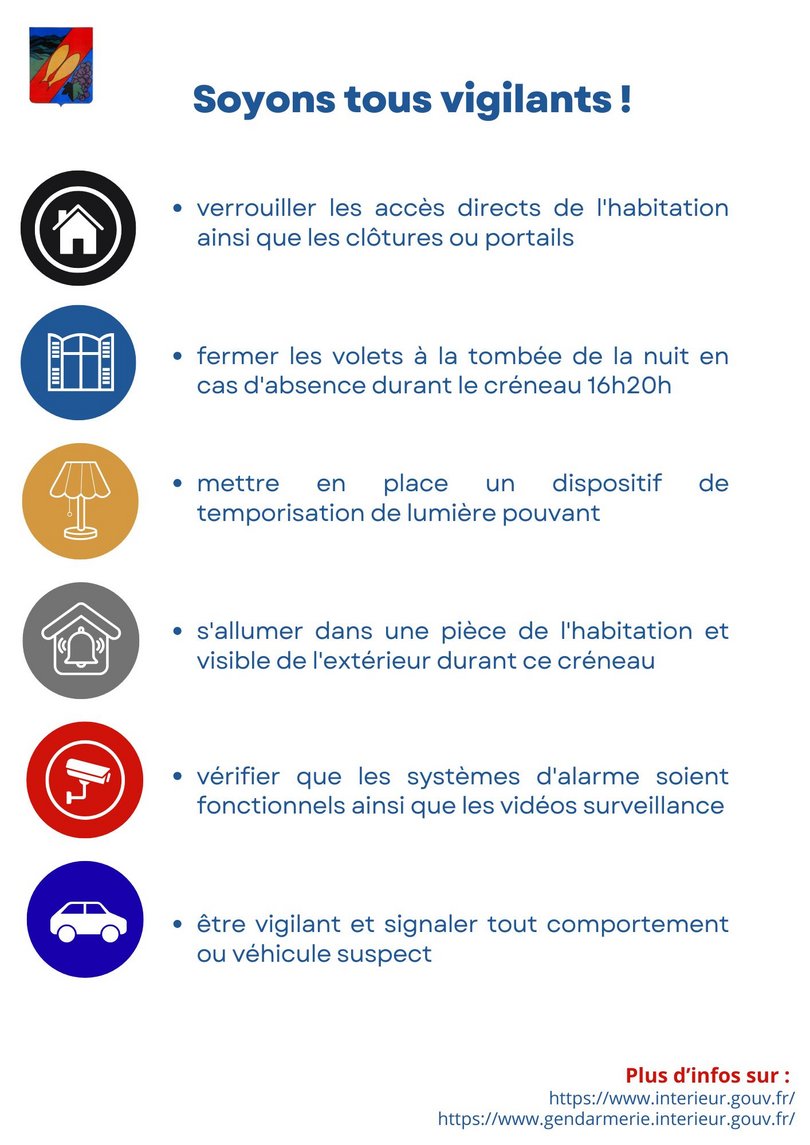 Rappel des bons réflexes à adopter pour éviter les cambriolages. 👀 La vigilance de chacun fait la sécurité de tous ! 🔐
