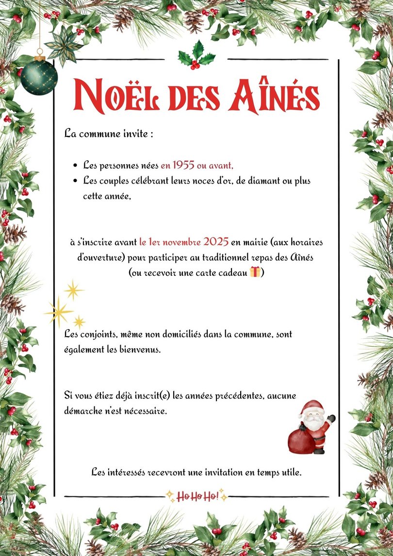 👉 La commune vous invite à participer au repas des Aînés ou à recevoir une carte cadeau 🎁 !